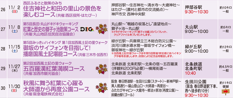 ● 2025年度の神鉄ハイキングは、係員の同行やコース途中での案内を行わず、各自で自由にハイキングをお楽しみいただく「マップ片手にフリー