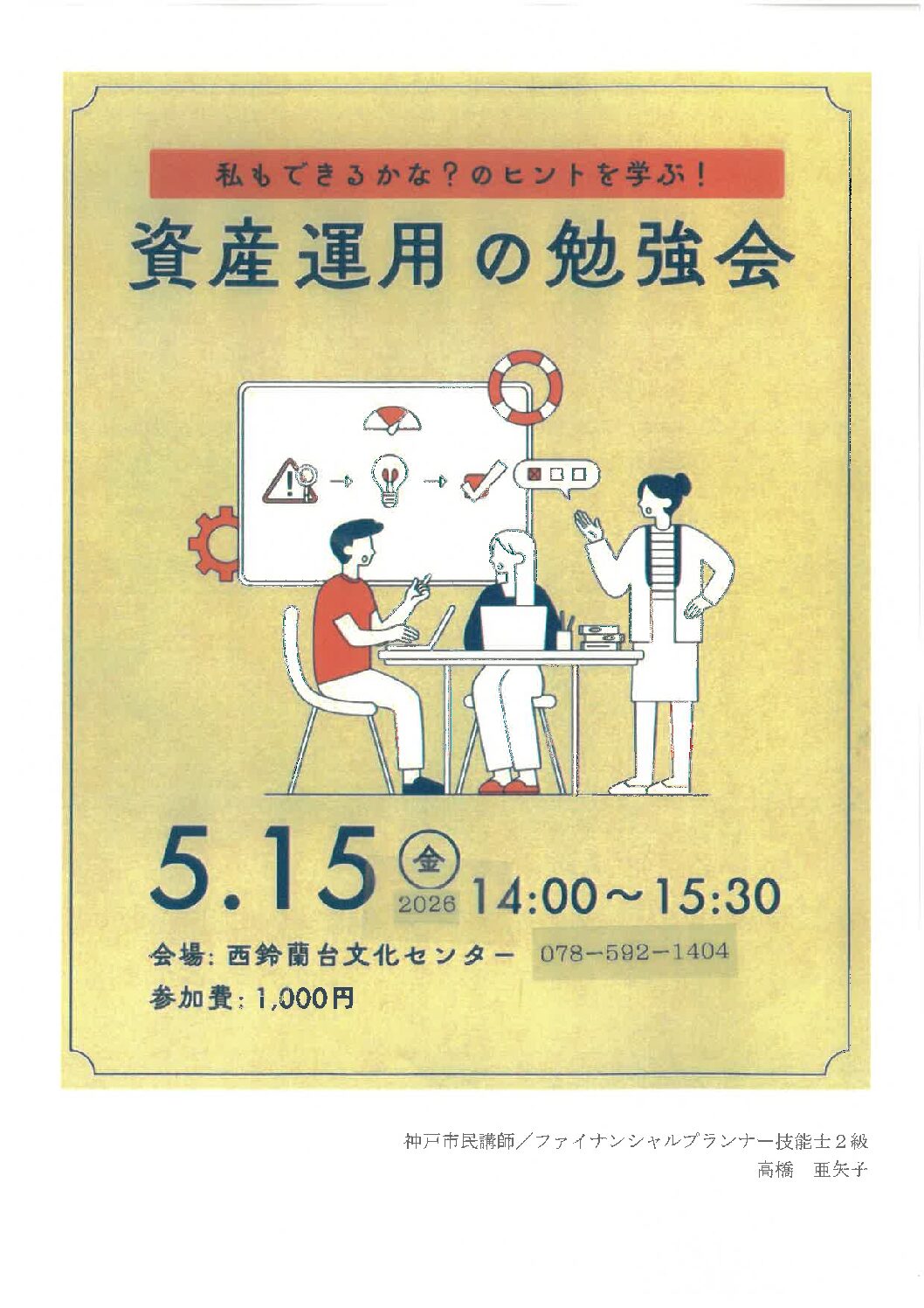 講座のお申し込みは西鈴蘭台文化センターへお問合せください。