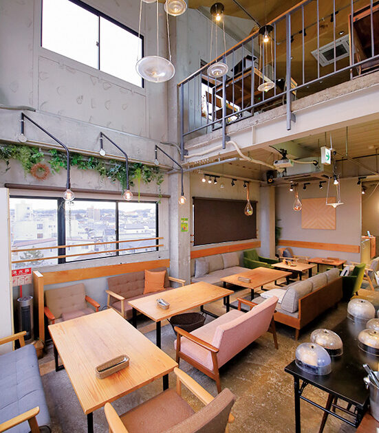 大きな窓と吹き抜けになった空間が、広々とした印象を与えるイタリアンカフェ。種類が豊富なランチメニューはもとより、創作料理を楽しめるコース料理もおすすめ。団体での利用も可能です。