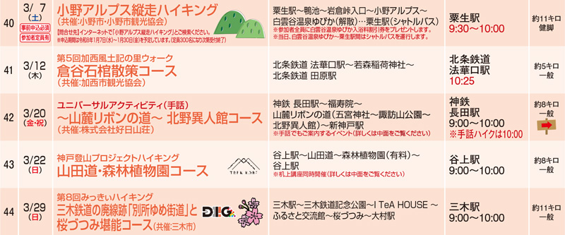 ● 2025年度の神鉄ハイキングは、係員の同行やコース途中での案内を行わず、各自で自由にハイキングをお楽しみいただく「マップ片手にフリー