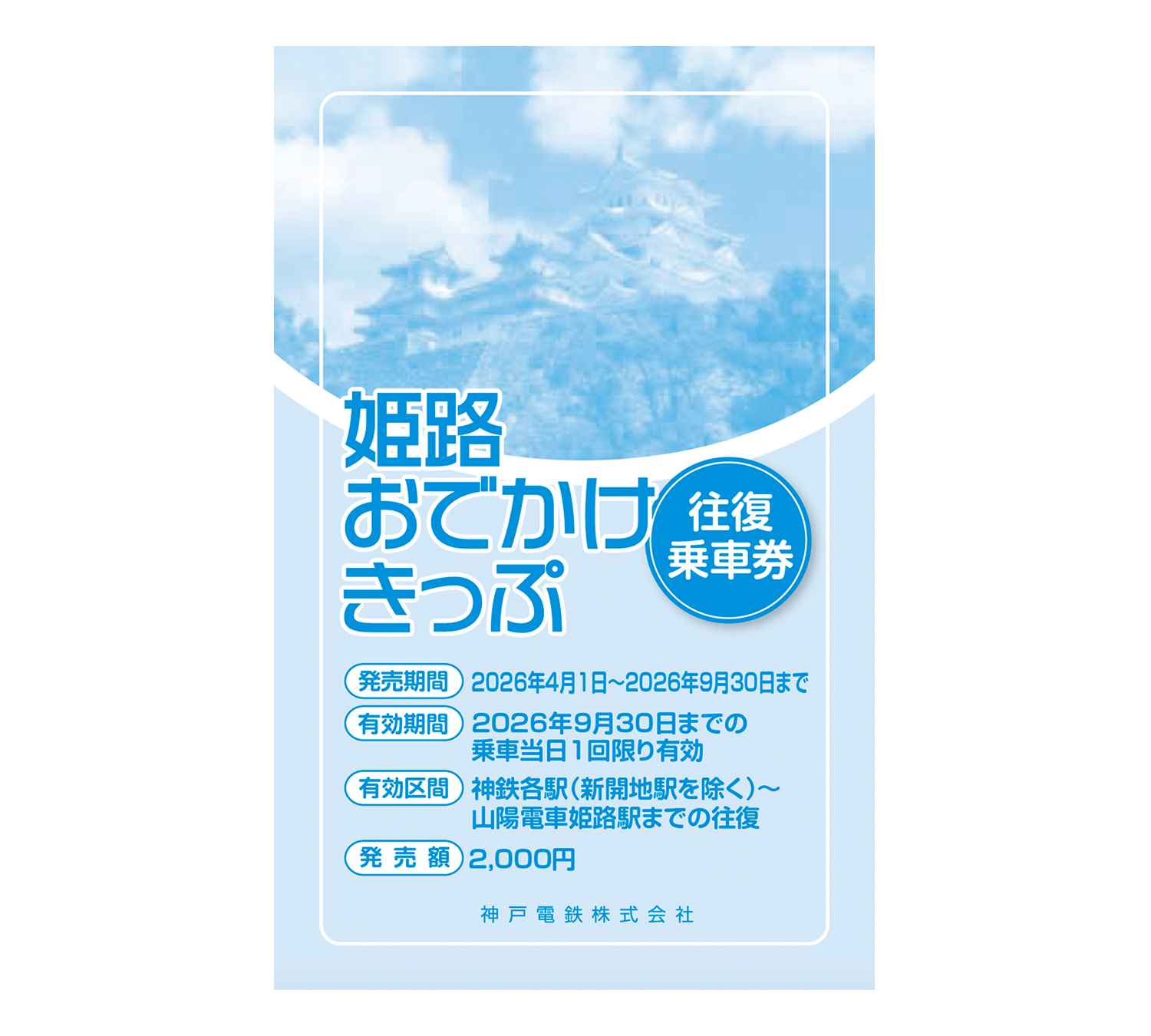 神鉄各駅から山陽姫路駅までのお得な往復乗車券。〔発売枚数限定〕