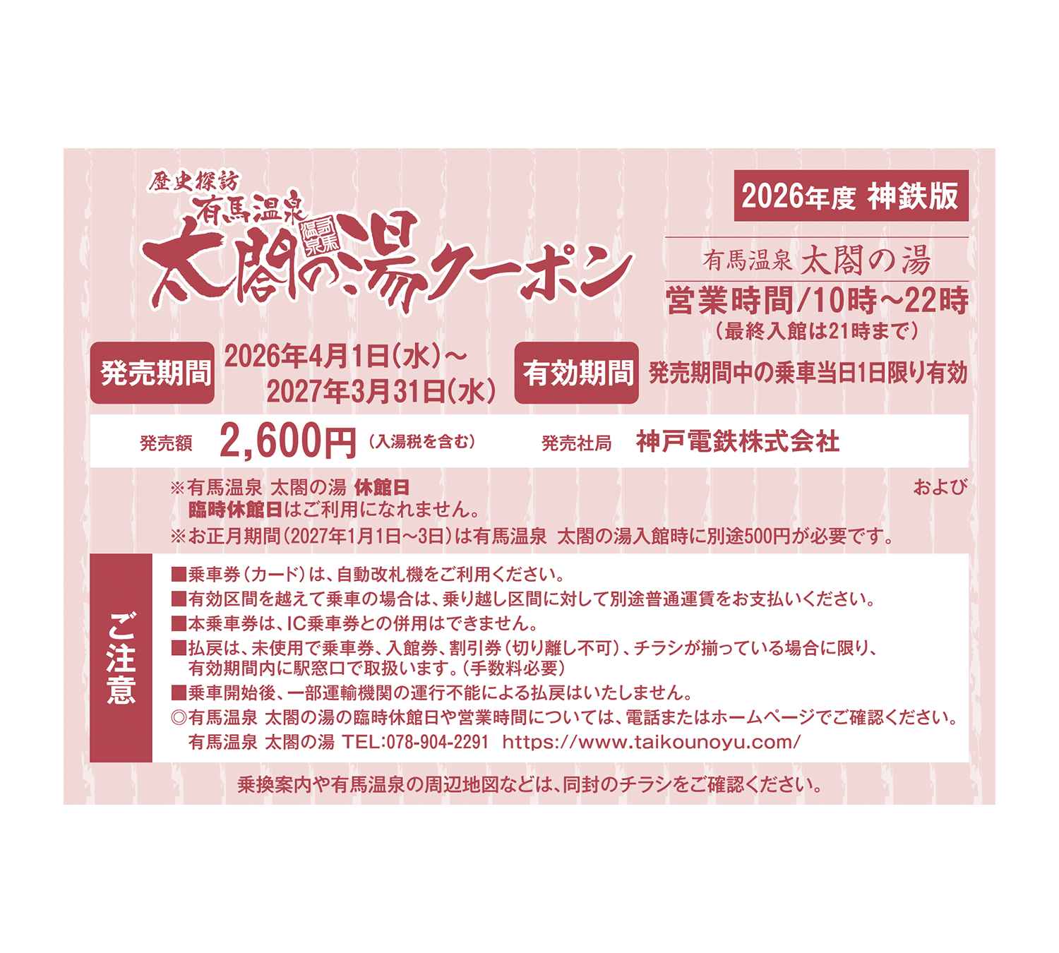 | 有効区間 | 神戸電鉄各駅(新開地を除く)~有馬温泉駅 |