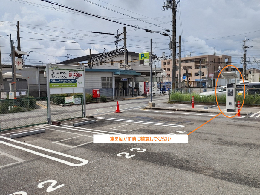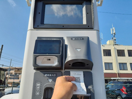 精算機の案内画面に従って、二次元コードをかざして手続きを行ってください。
