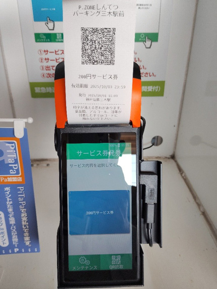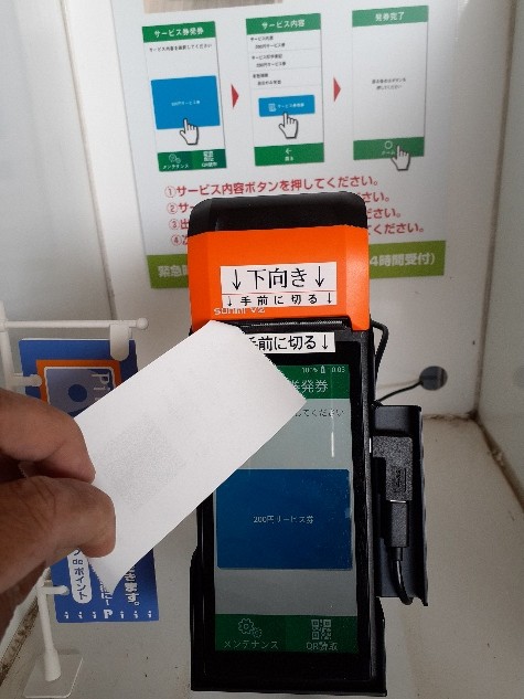 発券された二次元コードを切り取る際は、下向きに切り離してください。