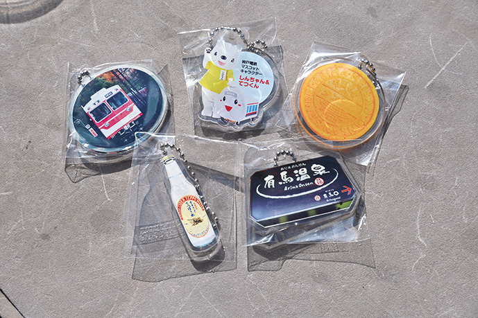 有馬温泉の定番土産や神戸電鉄が走行している様子などをモチーフにしたアクリルキーホルダーが、カプセルトイとして「有馬ます池」に登場!売上の一部は寄付金として、神戸市のまちづくりや文化振興などに活用されます。